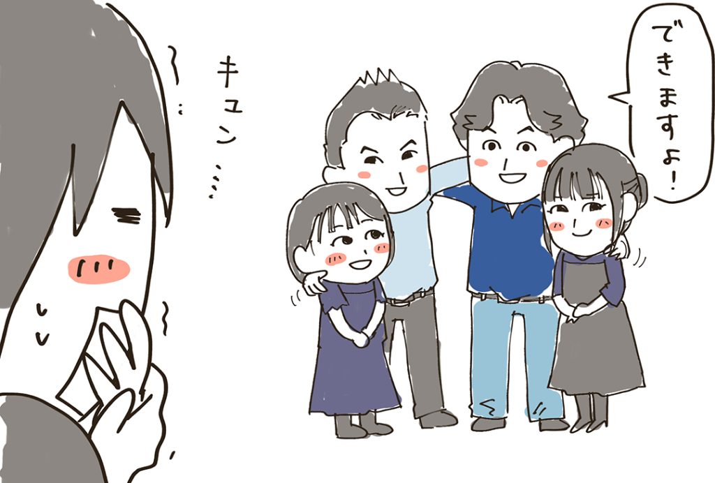 もっとこの仲良しな感じを写真で表したい!と思った私たち。「肩を組んでもらうことできますか…?」とお願いすると、
