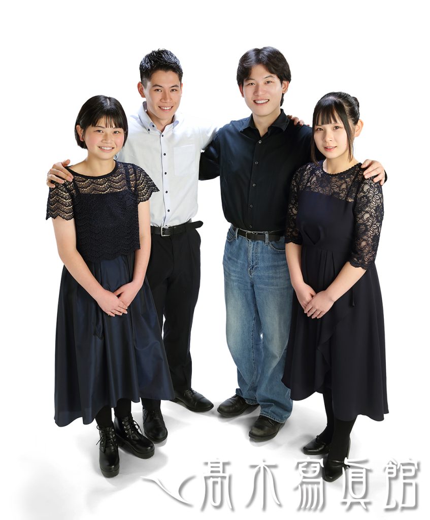 年の近い4きょうだい。それもみんなほぼ大人の年齢です。どんな構図がいいかな…といろいろ考えていたのですが、撮影前や撮影中にいろいろ話していると、一番上のお兄さんを中心にとっても仲が良いきょうだいだと分かりました。